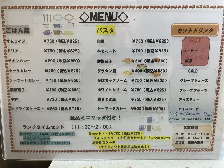 ランチタイムには、お得なセットメニューがあります。 ↓