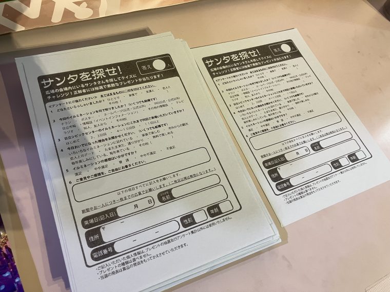 見つけられたサンタの人数を書いて下の箱に…申し込むと、 ↓