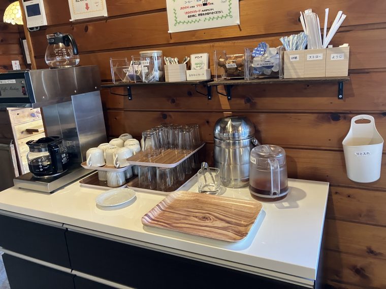 店内にあるドリンクコーナーから、セルフで飲み物を1杯選べます(^^)。↑
