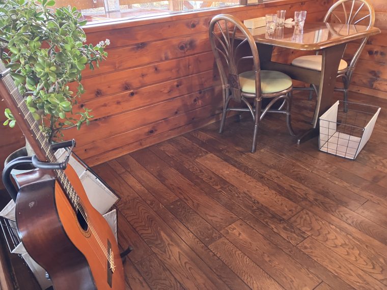 店内④ 片隅にギターが…時々ライブなど、やるのかな?