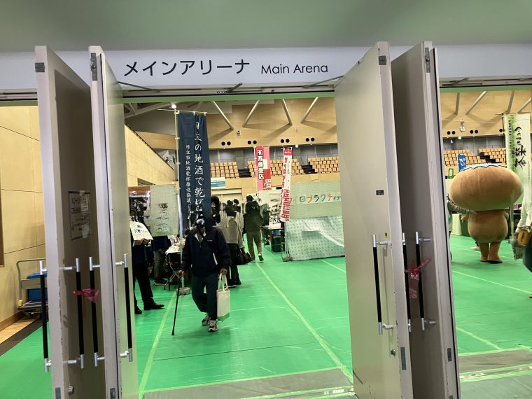 会場⑦ メインアリーナでは、国内親善都市(桐生市)、友好都市(山辺町)の特産品の展示販売や…